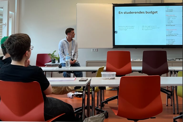 Derfor føles det vigtigt og meningsfuldt at kunne give lidt videre. Oplægget endte i en rigtig god samtale, hvor eleverne stillede flere vigtige og nysgerrige spørgsmål, og også nogle, der fik mig til at grine. Det glædede mig at mærke deres engagement og lyst til at få et ærligt indblik i studielivet. Et par af de spørgsmål, der skilte sig ud, var: “Hvor meget bruger du egentlig ChatGPT?” og “Fungerer det at bo sammen med dine venner?”, spørgsmål, der viser, at det ikke kun er fag og læsning, men også trivsel og det sociale, der fylder, når man forestiller sig livet som studerende.